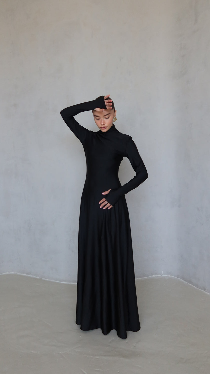 תכירו את שמלת קטרינה. מגיעה בשני צבעים- שמפניה ושחור. צווארון גולף למראה אסוף, שרוולי כפפה הדוקים, ההצרה נפתחת במותן ונשפכת באופן הכי נסיכותי שיש.