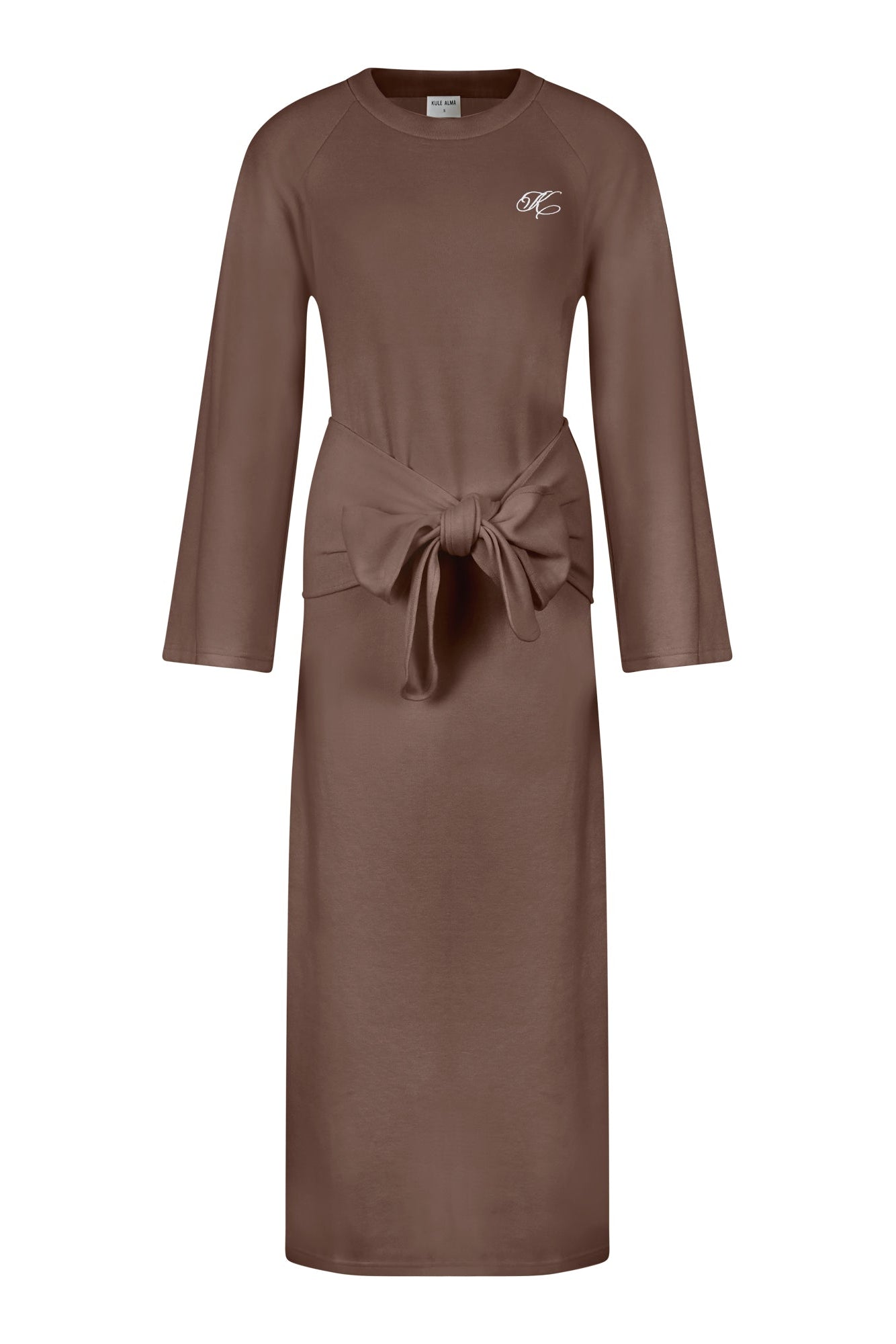 שמלת חורף מלטפת עם קשירת מותן ושרוולי פעמון.