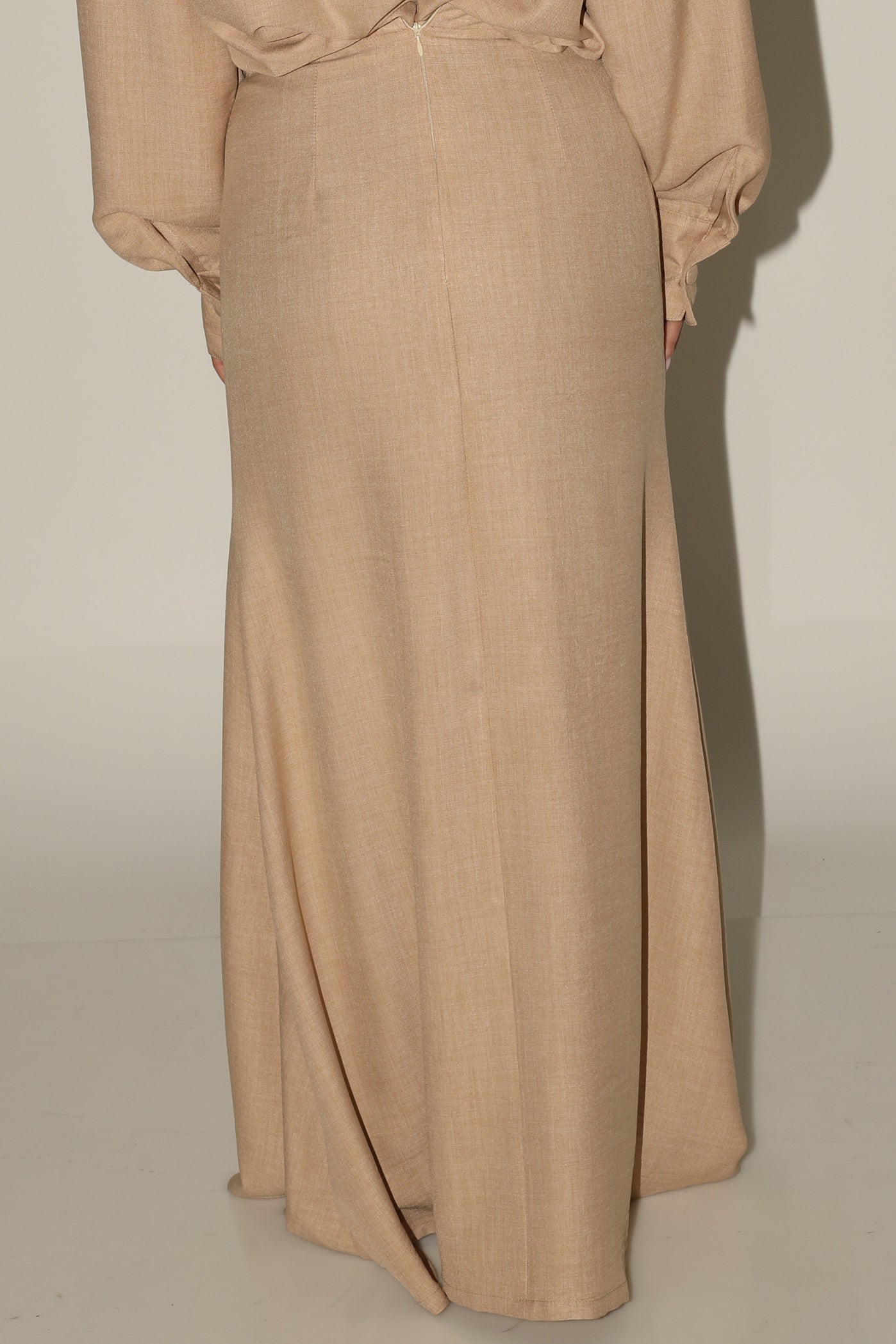 חצאית דמוי פשתן דקיקה ונשפכה על הגוף,