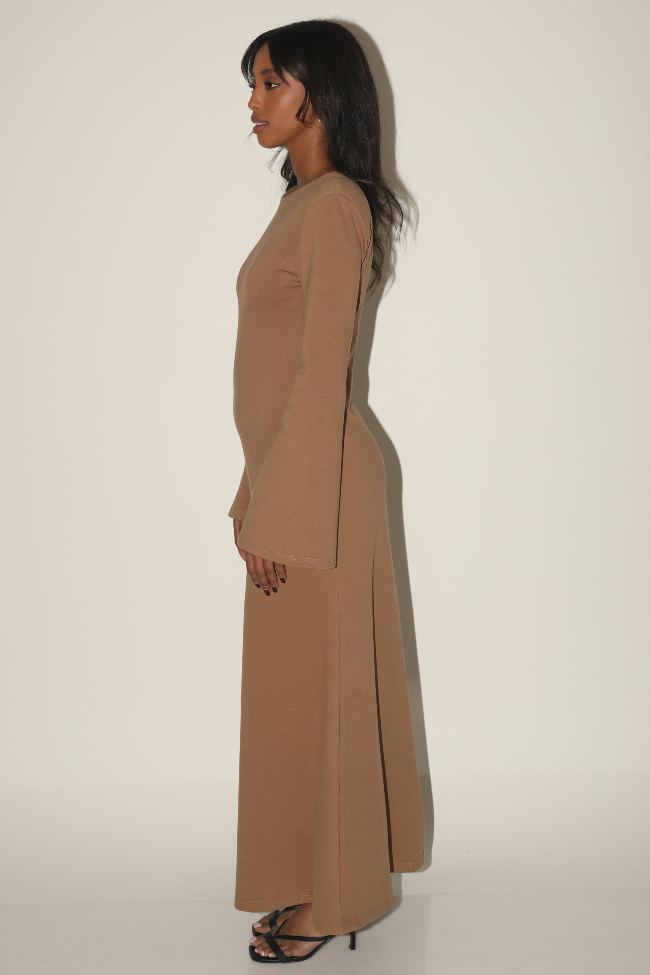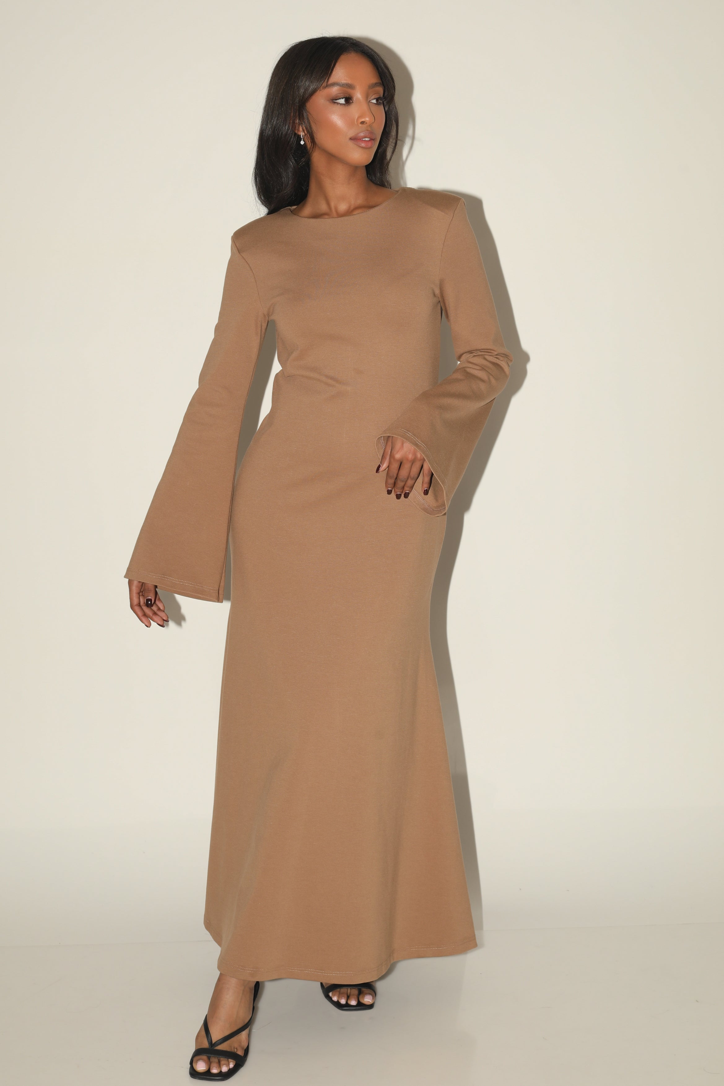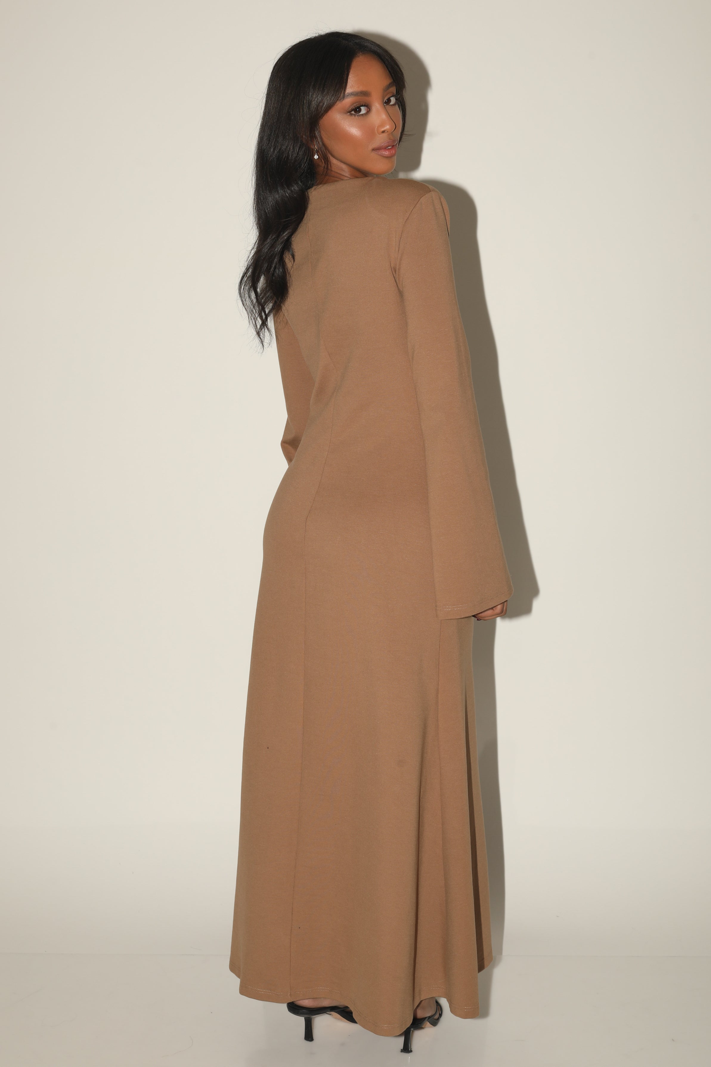 ELEGANT DRESS WITH SHOULDER PADS in BROWN