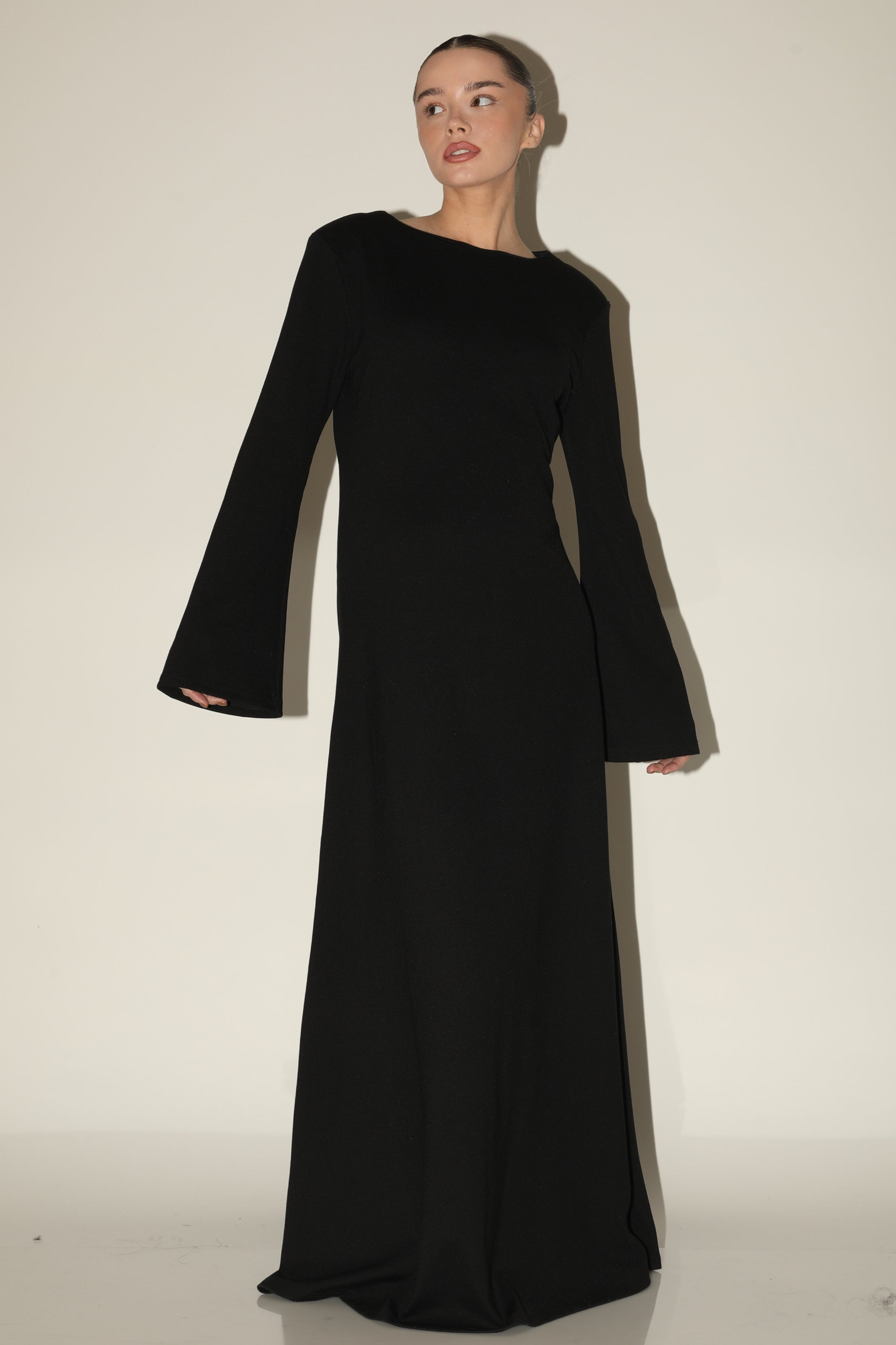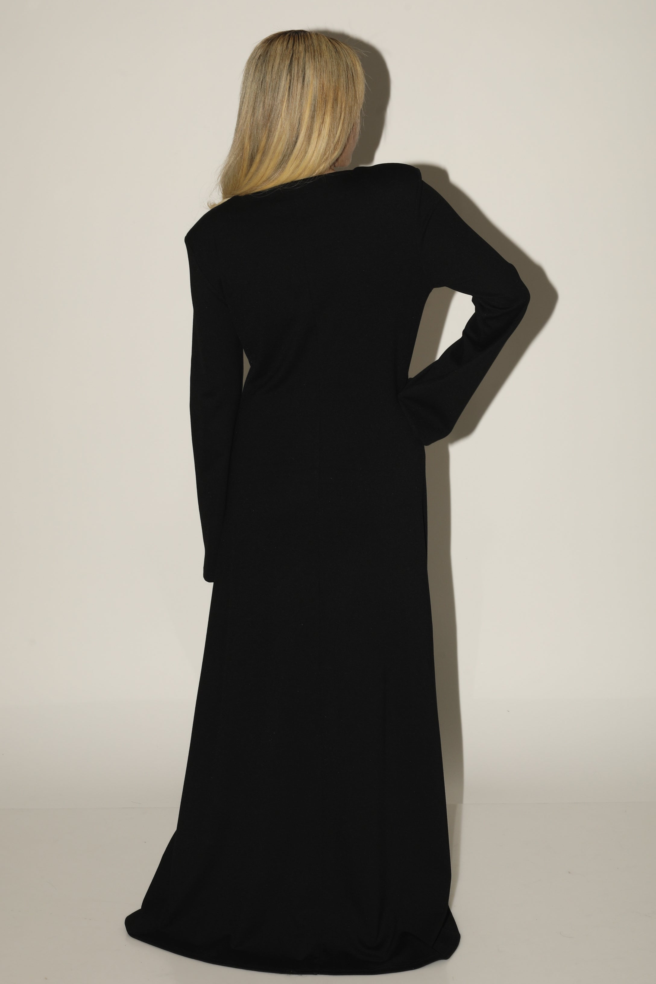 ELEGANT DRESS WITH SHOULDER PADS in BLACK