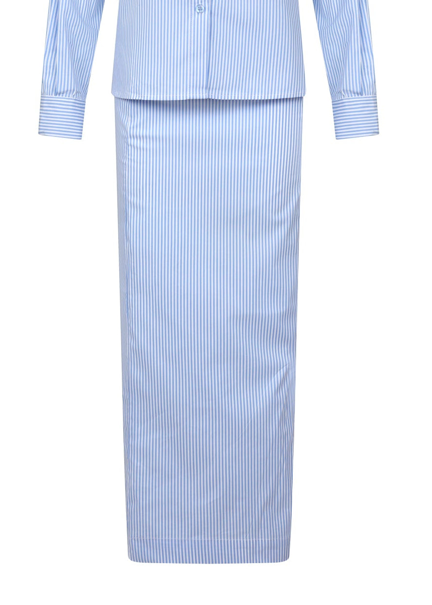 וחצאית בגזרה סופר גבוהה עם רוכסן אחורי ושסע קטן קדמי.
