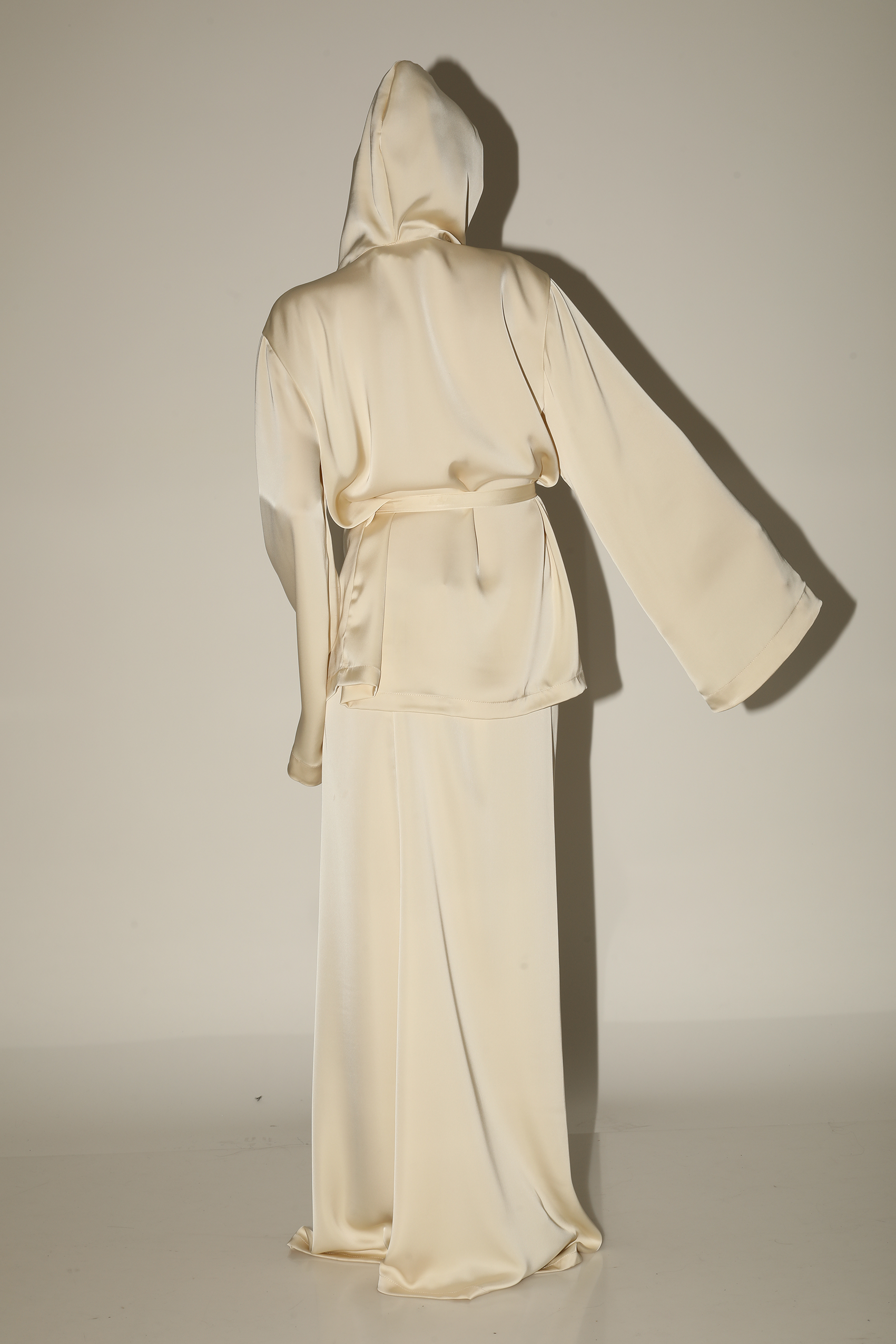 חליפת קימונו יוקרתית שלא התפשרתי בה אפילו לא על פרט אחד- החל מהבד סאטן האיכותי והנשפך ביותר שקיים, עד הקפוצ׳ון שמוסיף לה אמירה נועזת וסופר שיקית, קשירה במותן שמחמיאה לכל צורת ומידת גוף, טיקטקים פנימיים שיתנו לך להרגיש בנוח עם הבטחה ששום דבר לא יזוז או יפתח, ועד השרוולי פעמון שנשפכים על היד ונותנים מראה יוקרתי. מושלם לכל אירוע בעיניי,וגם ליום יום.